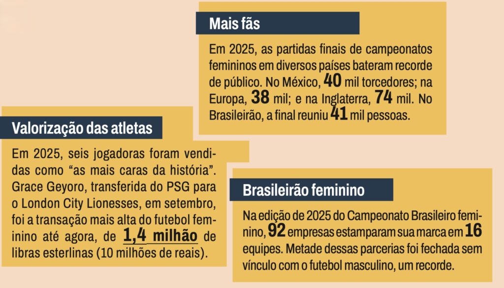 feminino vem ganhando mais espaço, visibilidade e investimento (leia mais abaixo). Para Aline Omote, da OutField, esse interesse vai além dos números e tem impacto direto na formação de novas gerações. “Vejo um crescimento na atração de público, principalmente entre as crianças” afirmou ao TINO.