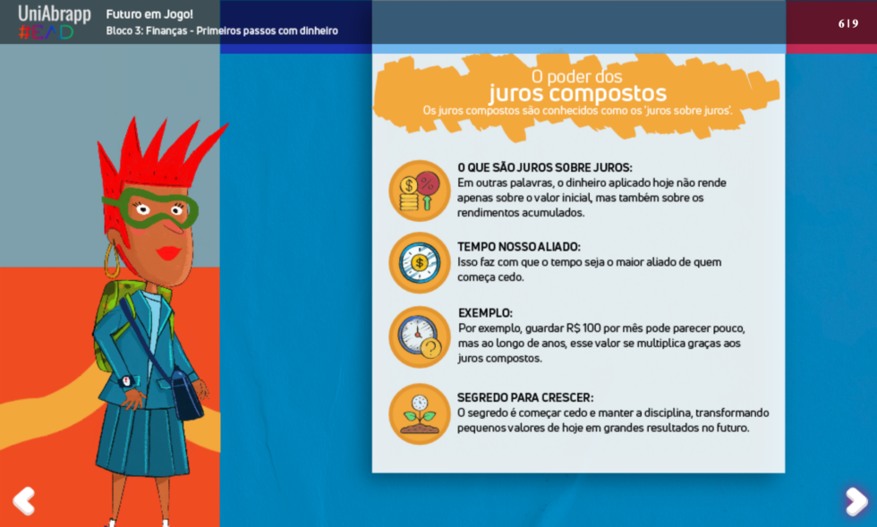 Para orientar os jovens que estão nessa fase da vida, a Universidade Corporativa da Previdência Complementar (UniAbrapp), criou o Futuro em Jogo, um jogo gamificado com todas essas orientações dadas de maneira simples para pessoas de todas as idades.